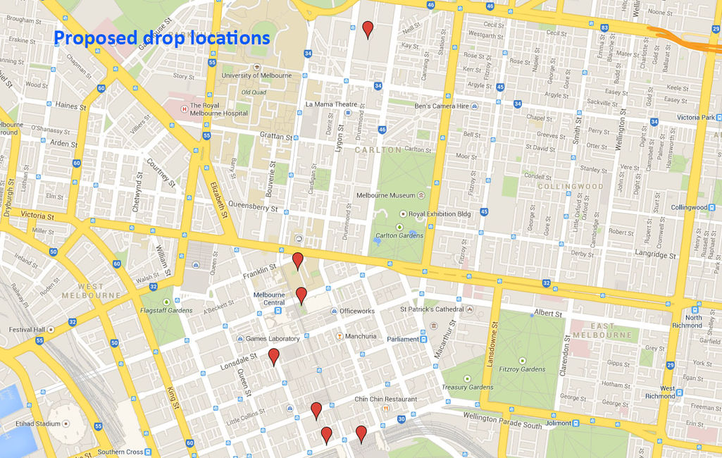 Where we dropped the plants is slightly different from our proposed locations. This was because of two factors; the main one was due to the fact that we had less plants than we originally planned for. Federation Square was also dropped due to us being unable to get security clearances on their premises.